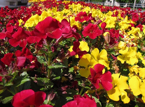 В этом году, я решила создать контрастные композиции из красного, жёлтого и белого. Я приобрела мимулюсы однотонных окрасов. Эти низкорослые цветы отлично подойдут для моей задумки.