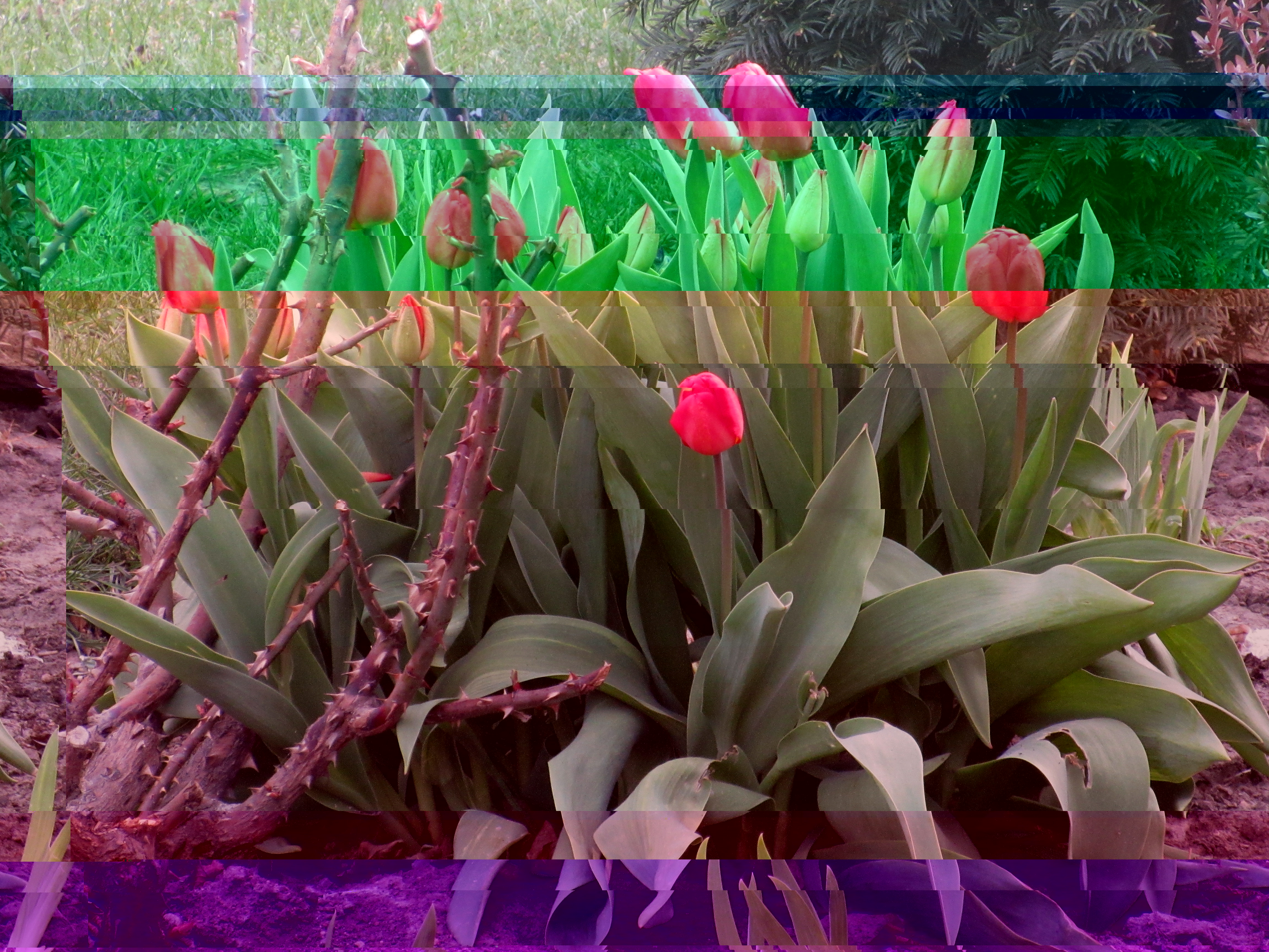 Сейчас у меня повсюду цветут мускари, зацветают ранние красные тюльпаны и примулы. Нарциссы у меня, к сожалению, долго не живут...