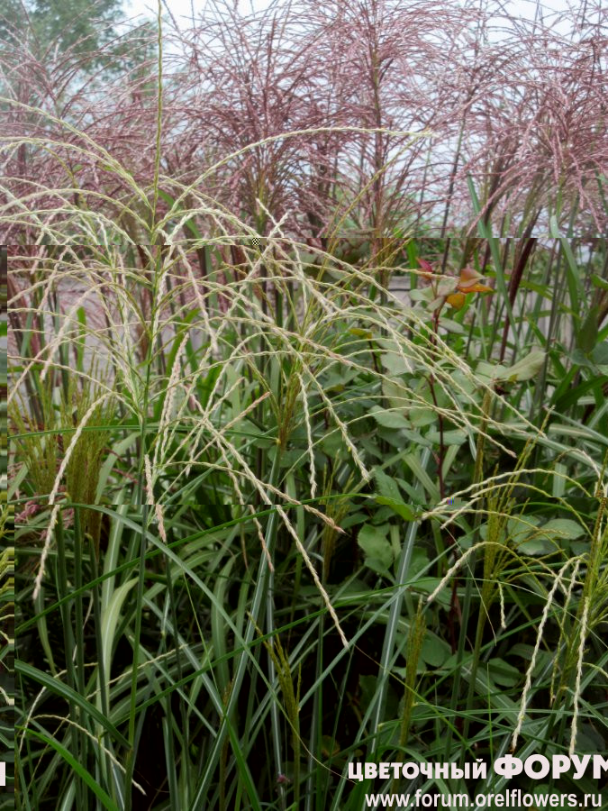 Рядом растут два мискантуса разного сорта. Уже зацвели!