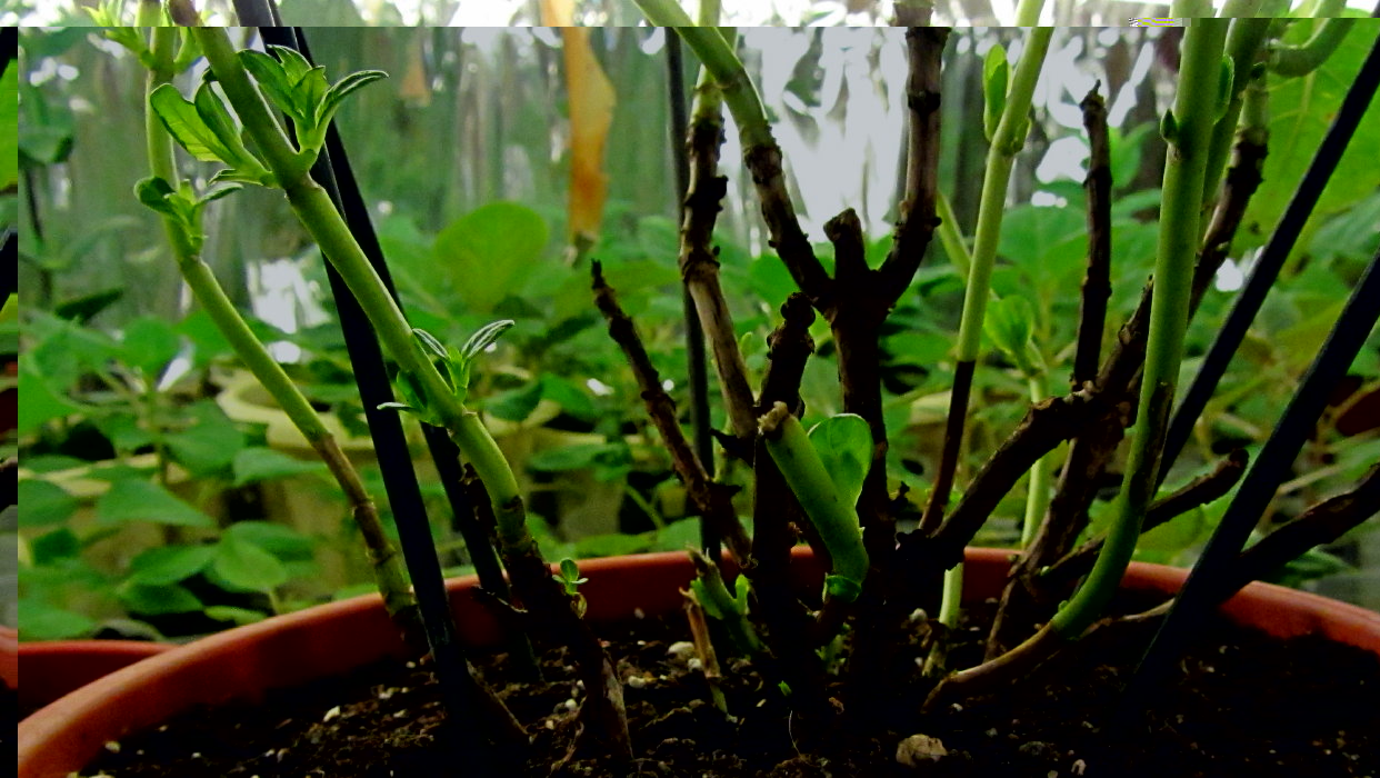 свежему воздуху.А 4 стоят в пакетах. Пересаженная гортензия начала наращивать почки в листовых