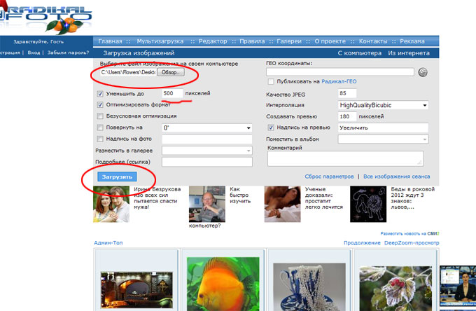1. Сначала выбираем файл фотографии который мы хотели бы загрузить на своем компьютере (нажмите "Обзор").