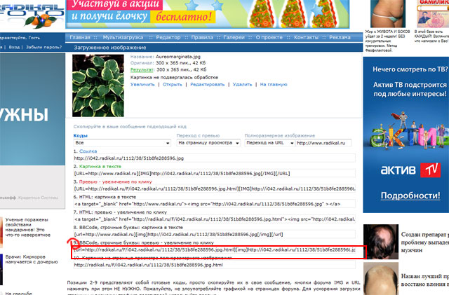Вот что получаем в результате... Выбираем и копируем код из п.9 (он подойдет для нашего форума).