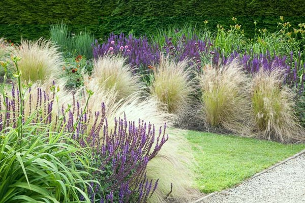 Я не стала ждать милости от природы и на днях купила корешки желтого сортового люпина и шалфея дубравного синего цвета. Не дают спокойно спать фотографии, на которых шалфей в компании злаков: