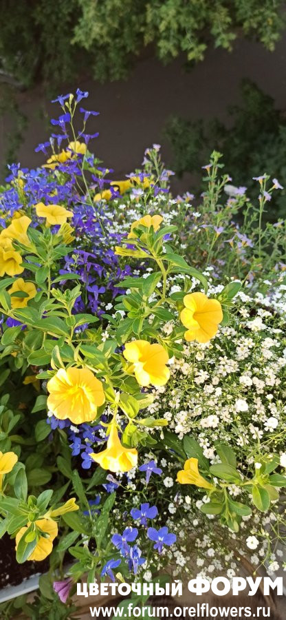 Мне нравятся ваши композиции, удачное сочетание цветов, все продумано)))) калибрашка желтая и лобелия синия - супер! Космея шикарная! Люблю ее, но в этом сезоне не получилось, посеяла сразу в грунт, не взошла....