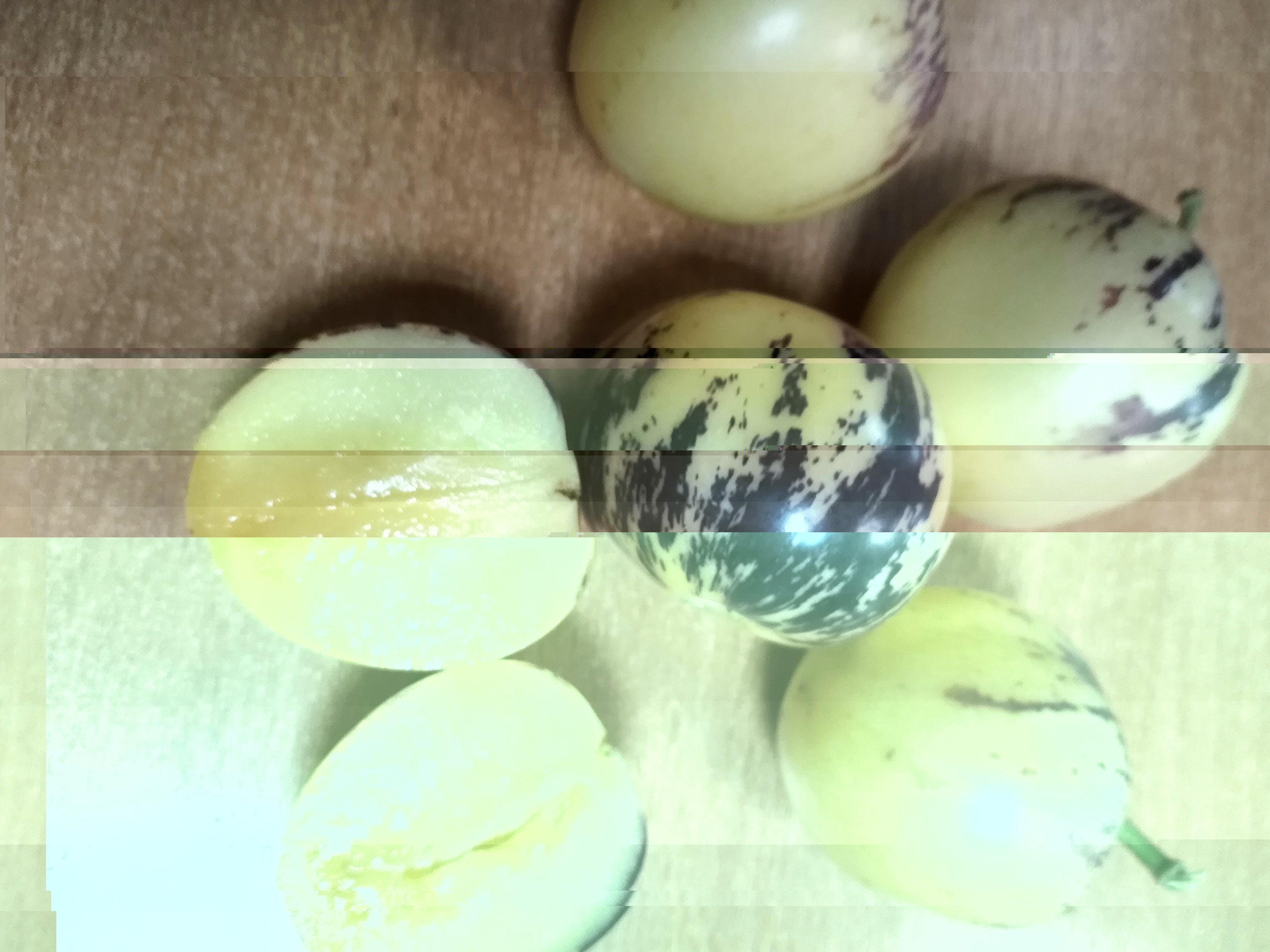 Погода резко испортилась, возможен минус, часть горшков с гортензиями занесла в теплицу. Пепино тоже планировала на пару недель оставить на дозревание в теплице, а когда попробовала не заметила, как всё ощипала, осталось освободить горшок. Зрелые они жёлтые с фиолетовым полосами, мягковатые на ощупь, имеют привкус дыни, ягод было штук 20,в горшке сидело два растения. Мне понравилось.