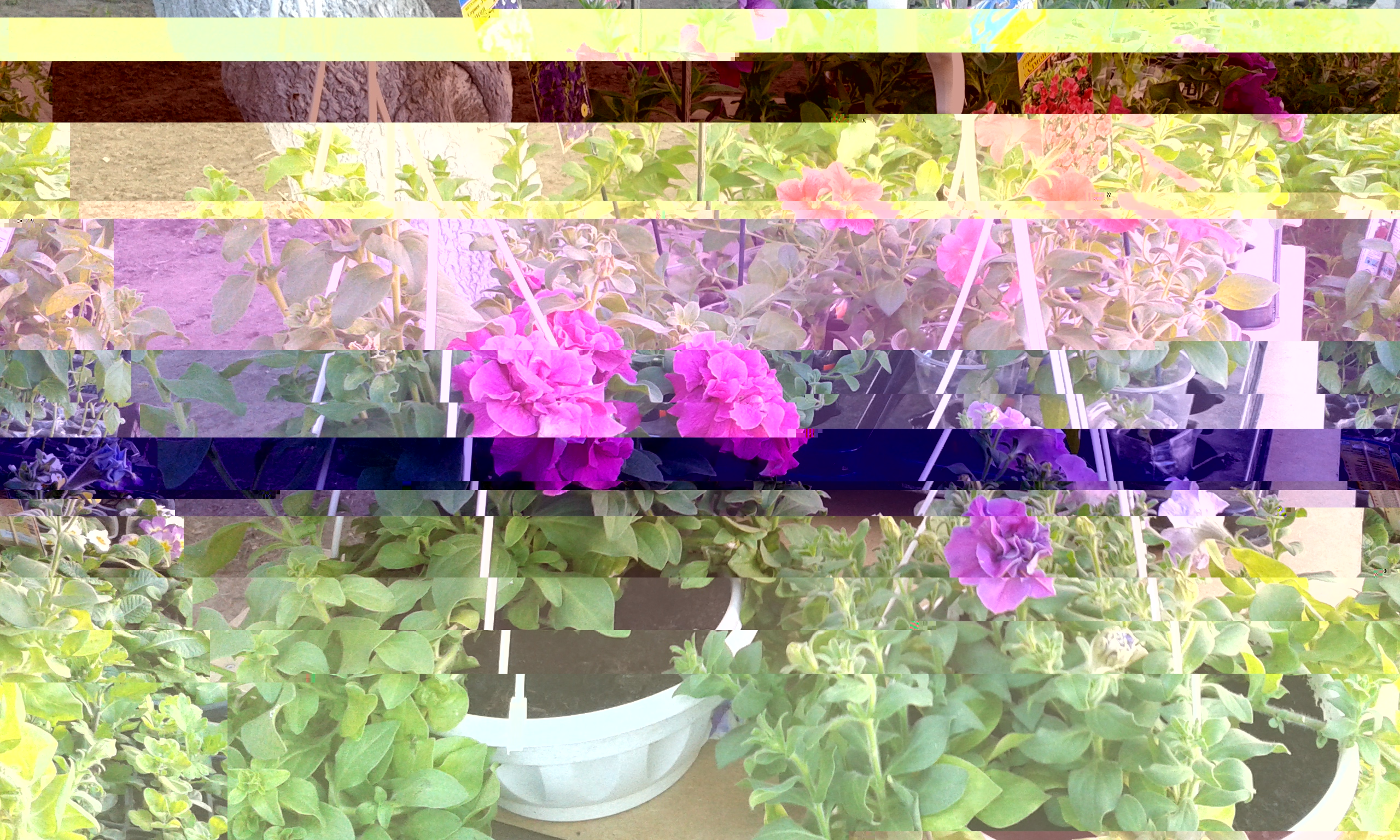 Махровые кустовые в 5литров по 2 шт.,ампели в них же по 1 шт. Все горшки заправлены удобрением длительного действия Осмокот для горшечных.