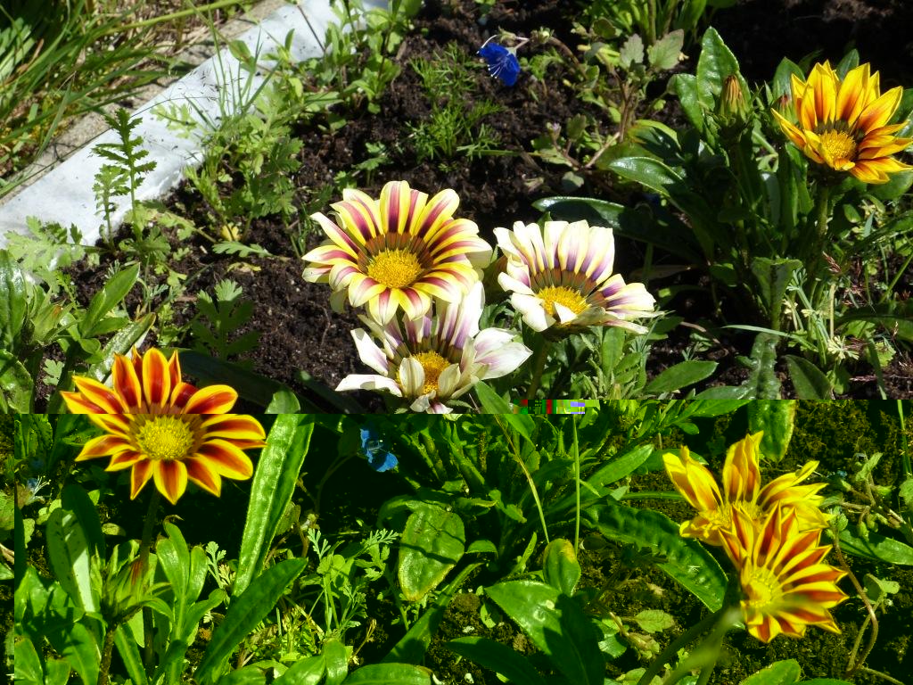 Я в прошлом году выращивала газанию. Цветочки прекрасны, да, но уж больно выгорают на солнце и выглядят неряшливо после дождя. Я специально растила её для открытого грунта, на могилу отца (только там у меня есть "своя" земля). У него открытое солнечное место и не всякий цветок выдержит солнце с утра и до ночи. Поливать не приходилось, так как лето было очень холодным и дождливым. Но газания росла и цвела до осени.